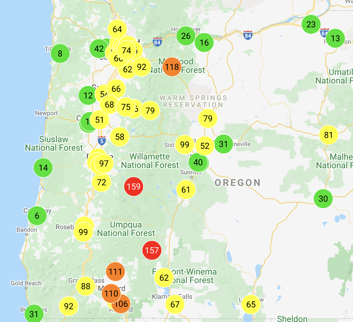 Let's see. Rain is in the forecast. It's late summer. And suddenly the air quality in the Willamette Valley goes bad with smoke. All day today, that's been the case.